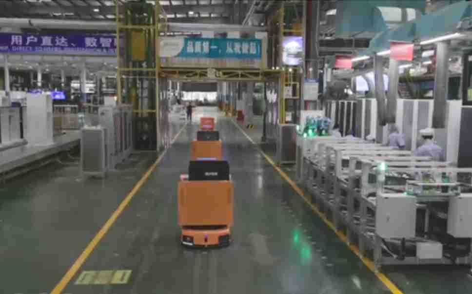 为车载冰箱物流配送打造的智能解决方案,,包含产中物流通过潜伏举升AMR搬运至线边,,,产后成品物流智能仓储,,,流程包含产中物流智能齐套入库,,线边安灯叫料AMR智能配送至线边,,,成品入库、、、、出库,,,,通过无人堆高车机器人,,智能仓储管理替代人工作业管理,,,,实现更高存储、、、更高效率、、更具柔性化的解决方案。。。。